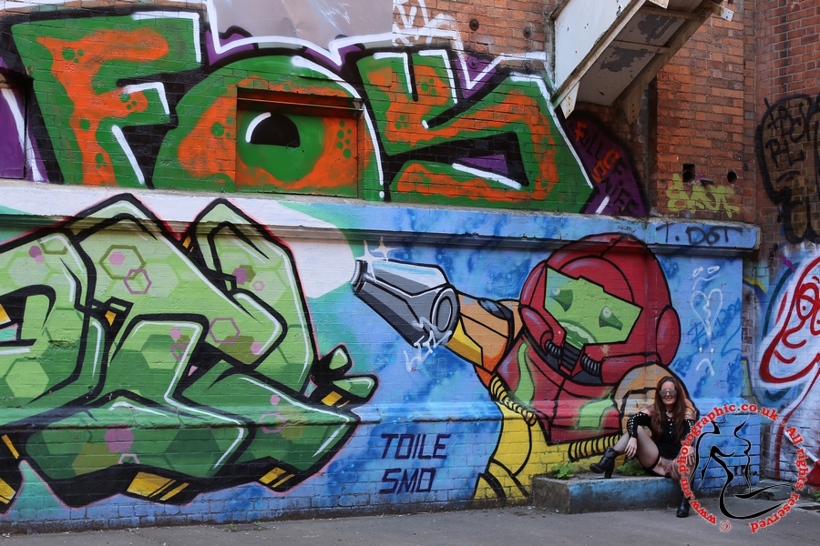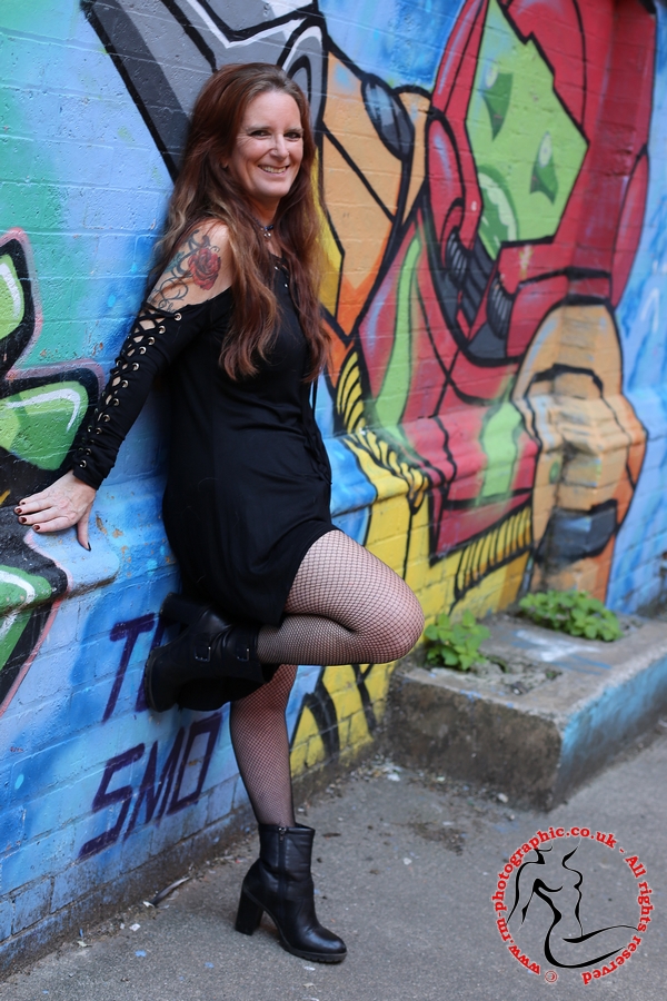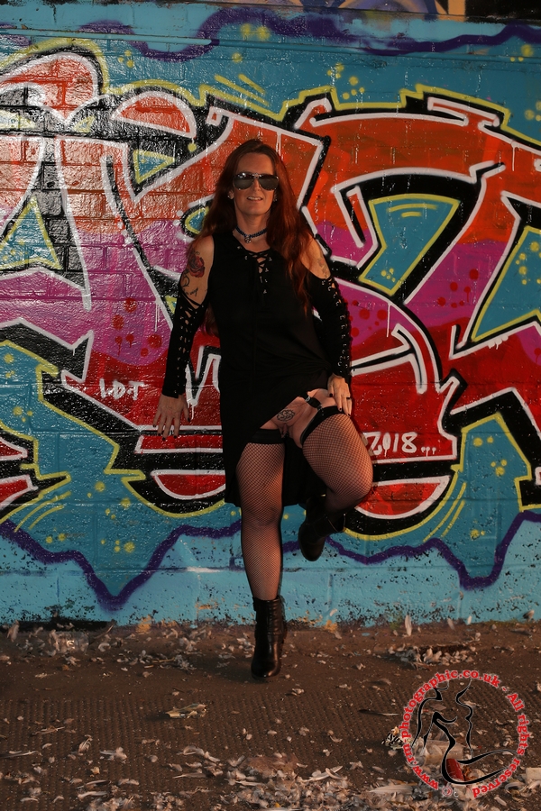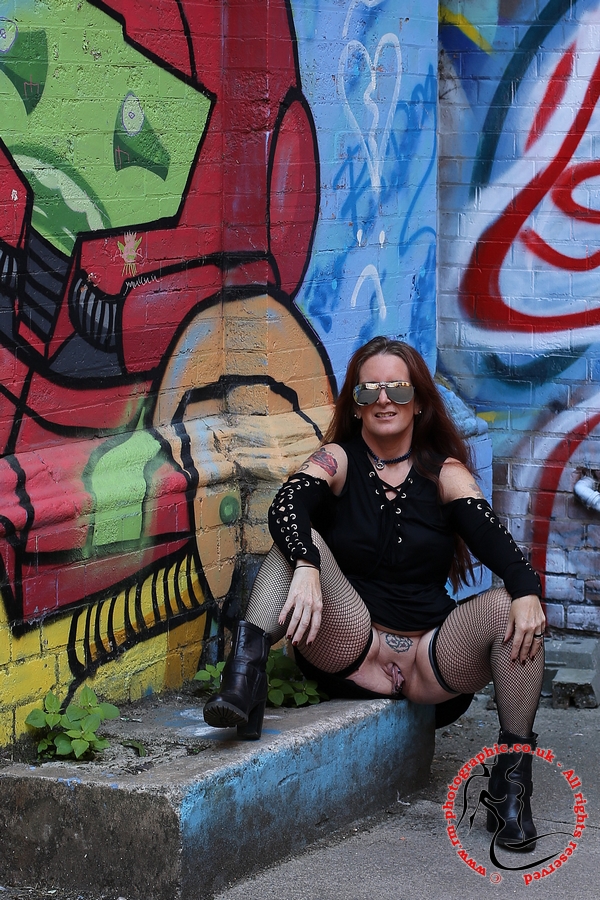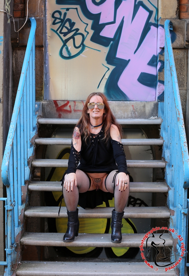 I'd heard about the old Broom skatepark and the graffiti surrounding it so we thought it would make an interesting "arty" shoot so I took a day of work and we went looking for it. It wasn't too difficult to find and despite the numerous signs prohibiting photography, we were soon shooting away without realising the whole area was overlooked by CCTV. Not long after we'd finished the nude pics, we were accosted by a burly security guard asking what we were doing. I replied taking photos to which he responded it wasn't permitted and asked us to leave the area. Seeing no benefit in arguing, I packed up my gear and off we went, stopping briefly on the steps to grab a few shots.