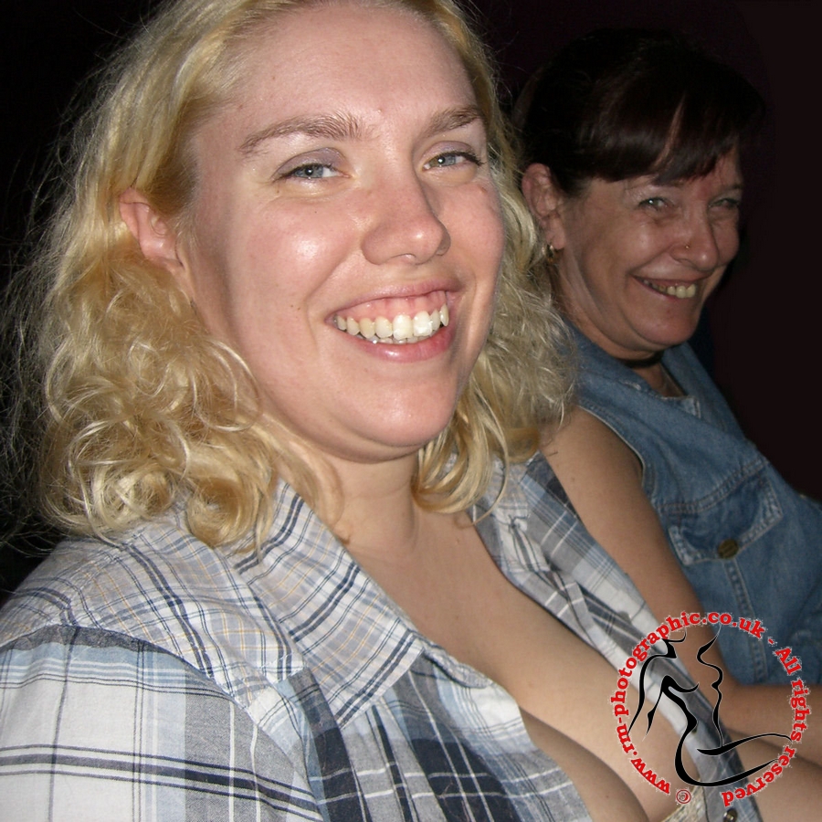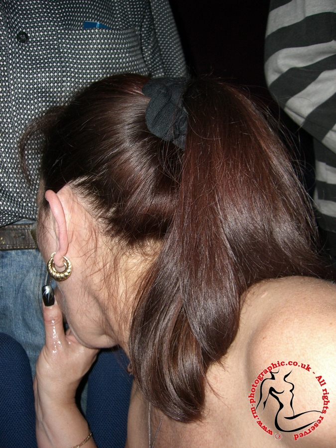 It wasn't long before the other patrons gathered round and the girls were enjoying multiple hands, tongues, and cocks. Very quickly, dresses and knickers were removed and the girls naked bodies were exposed to the men. The next couple of hours were spent making sure that all the guys came with Cherry and Barby enjoying their cum ob their tits and in their mouths - sharing each mouthful between them. To finish up, the girls moved onto the stage and gave a short show in front of the movie.